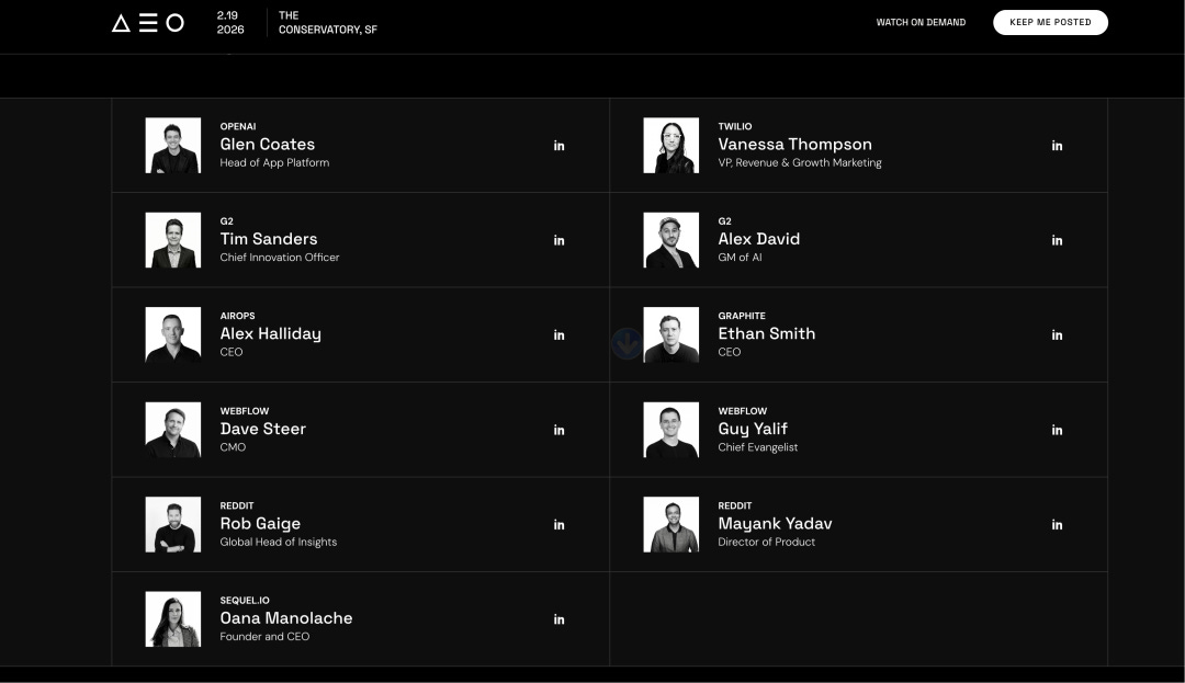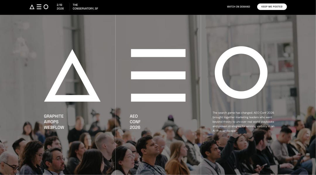 如果你想把 AEO 从“概念”落到“内容写法 + 测量 + 工作流”,先看 AEO Conf。