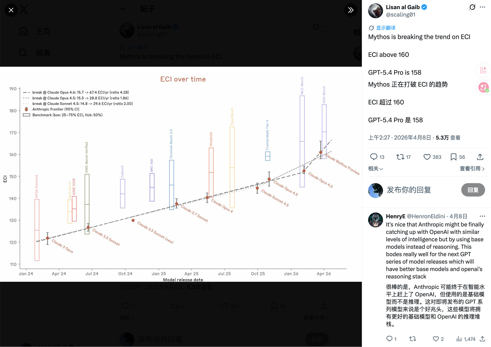 这是ECI (Economic Capability Index),它衡量的是 AI 到底能帮人类赚多少钱,或者说它在多大程度上能替代昂贵的人类专业劳动。