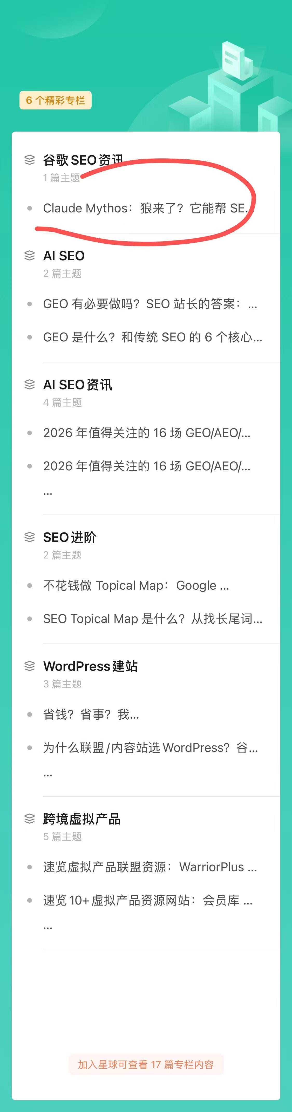 Claude Mythos Preview 被描述为一个全新的模型层级(而且是邀请制),最值得关注的点不在“会不会写”,而在它有没有机会把一部分“高级站长的脑力活”外包出去——比如 Topical Map、SERP 归因、GSC 复盘这种工作。