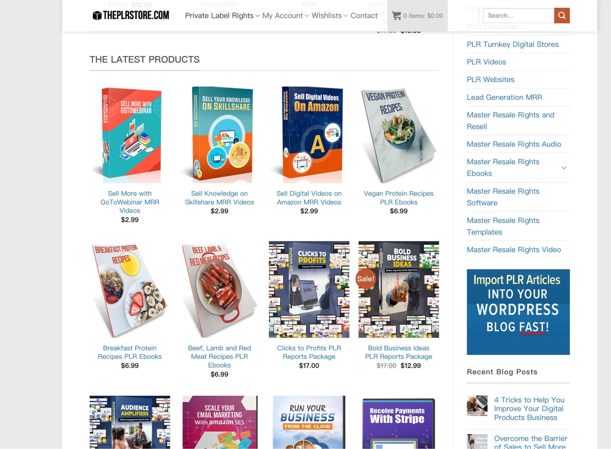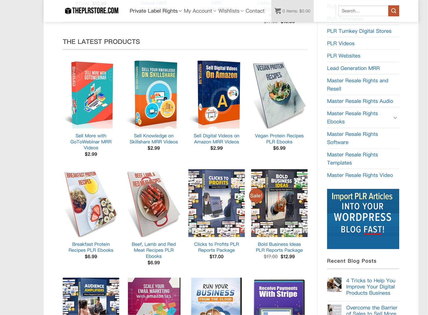 想要“低成本单品试错”:看 ThePLRStore($2.99 左右的 MRR videos)