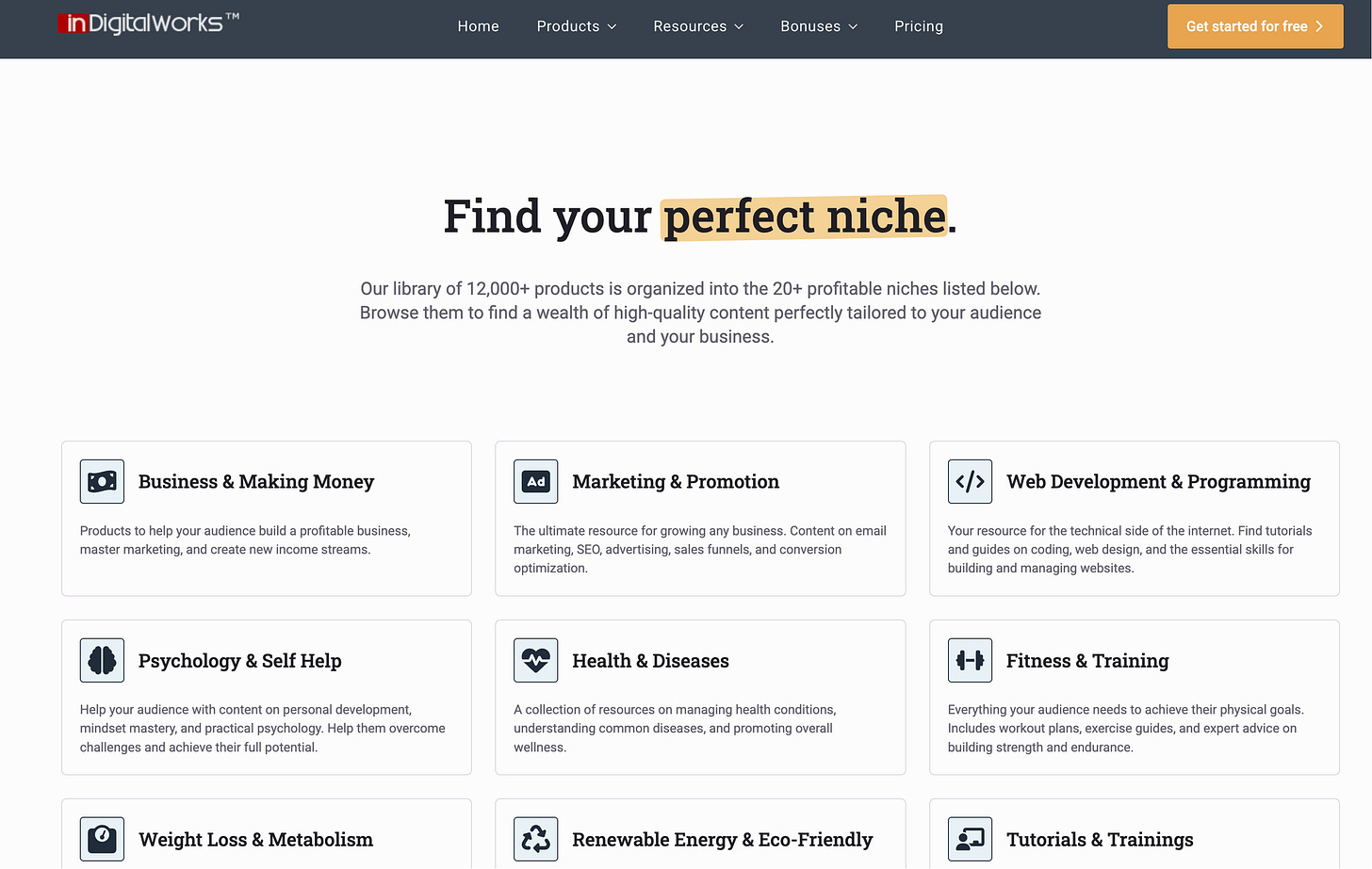 这个网站只有虚拟产品类型分类,没有利基分类