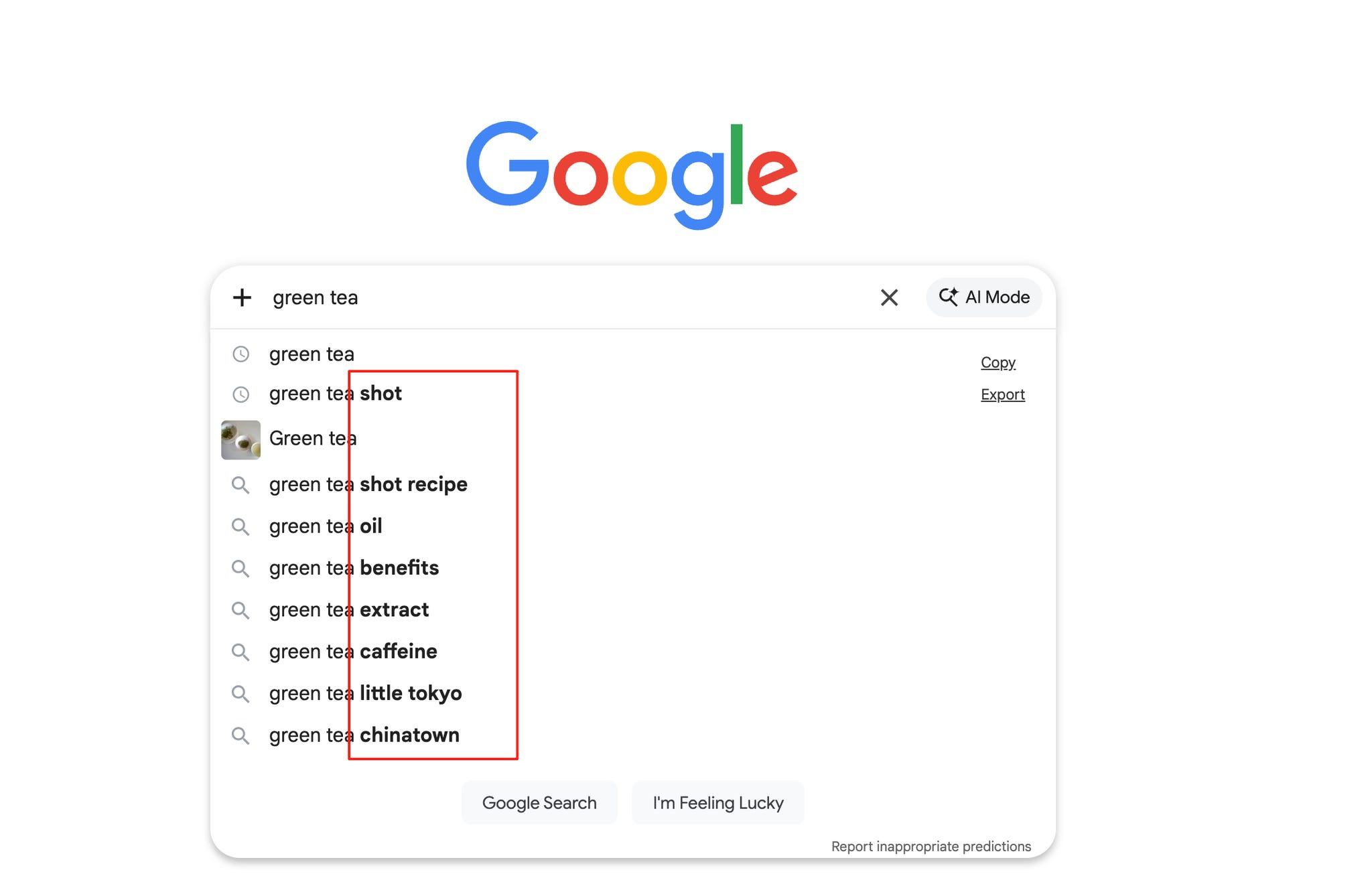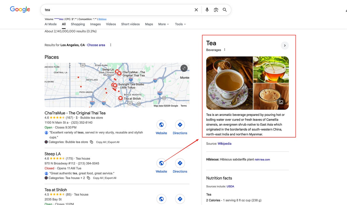 这一步的最终输出:主主题 = green tea,并列出排除项(brand/boba/near me)。