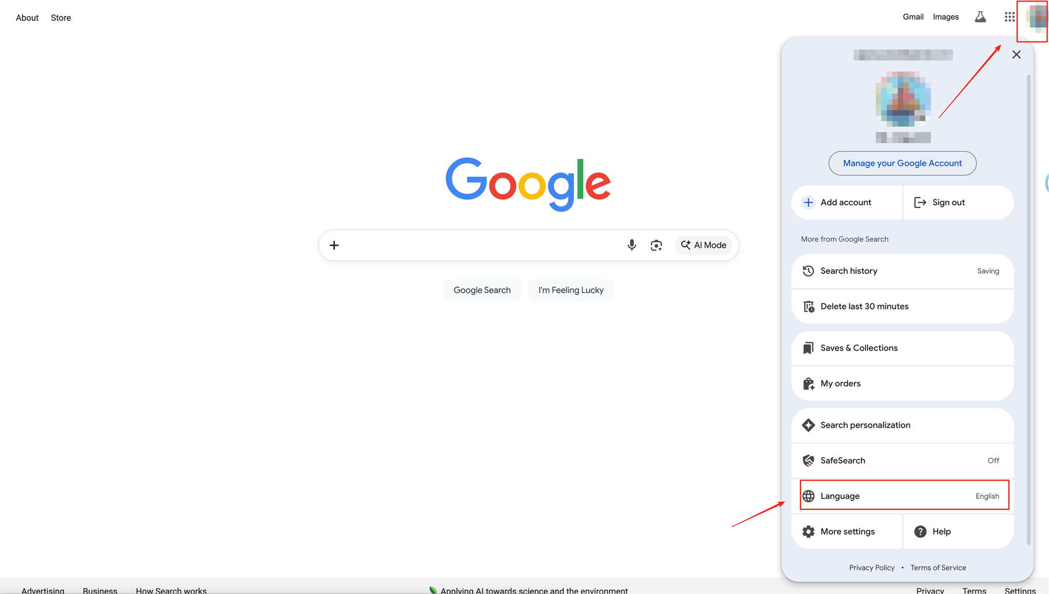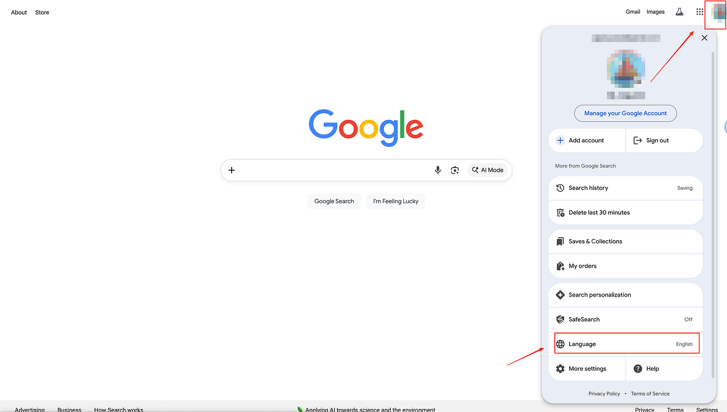 打开Google,把搜索结果语言设置成英文,地区设置为美国(根据你的要做的SEO的地区决定)
