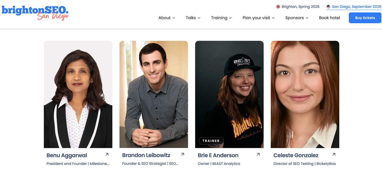 BrightonSEO 的美国西海岸场:相比英国本场更偏美国本土从业者,AI SEO/AEO 比重更高。