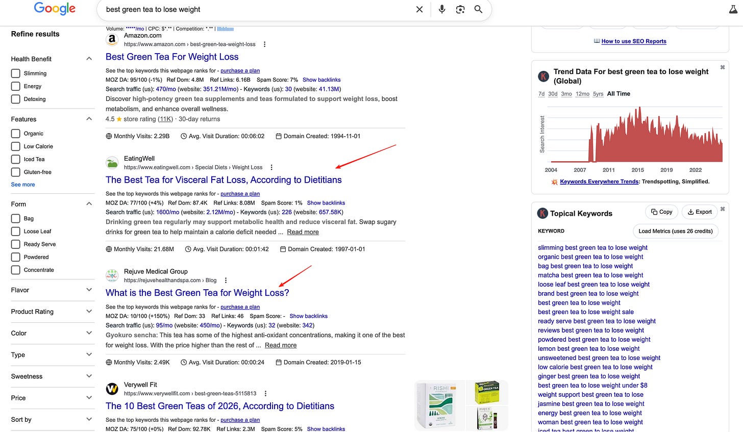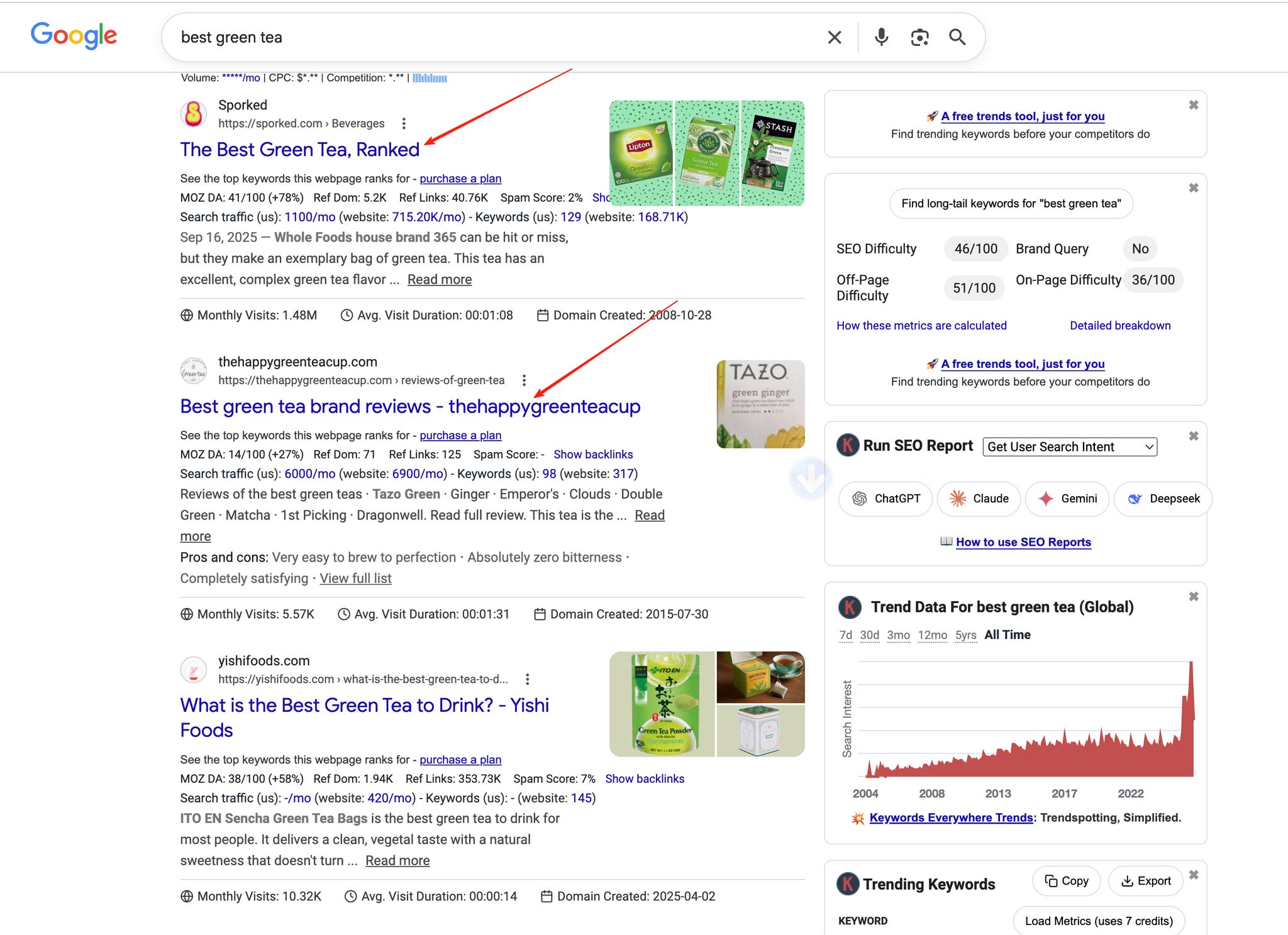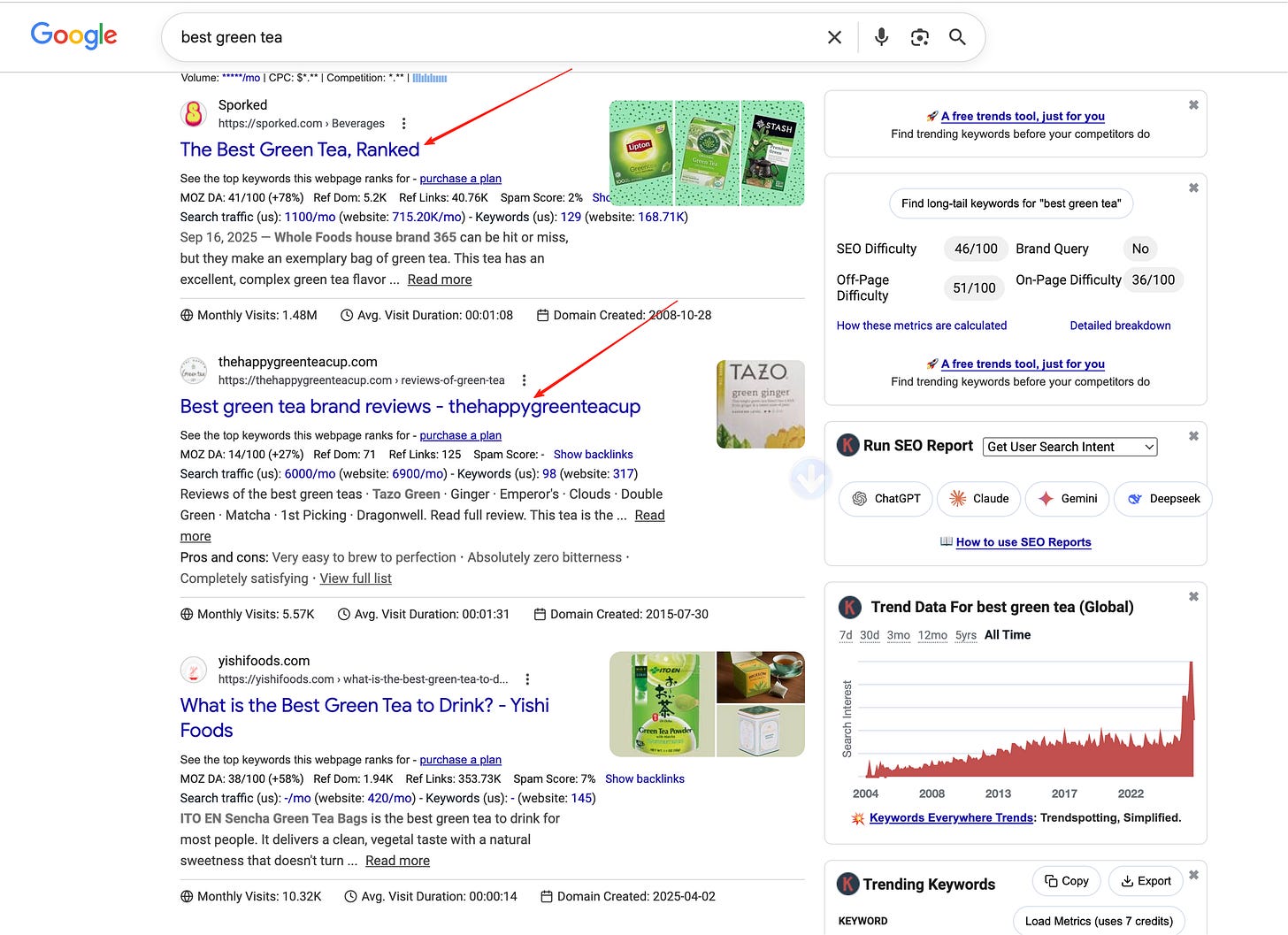传统 SEO 的目标是出现在 Google 首页的蓝色链接里。