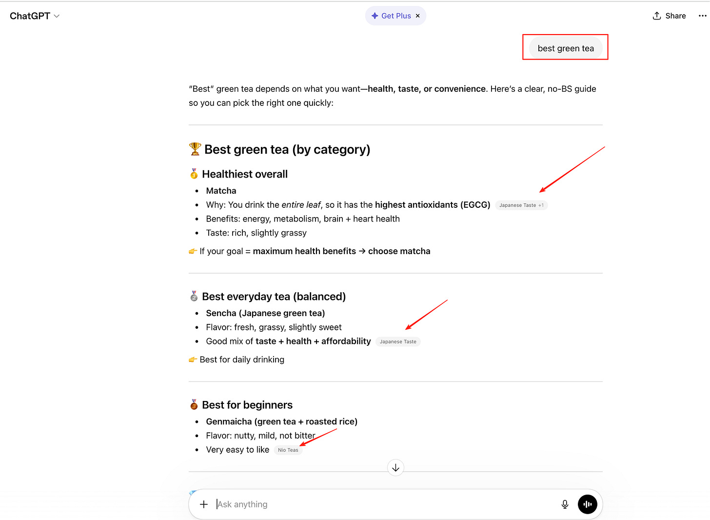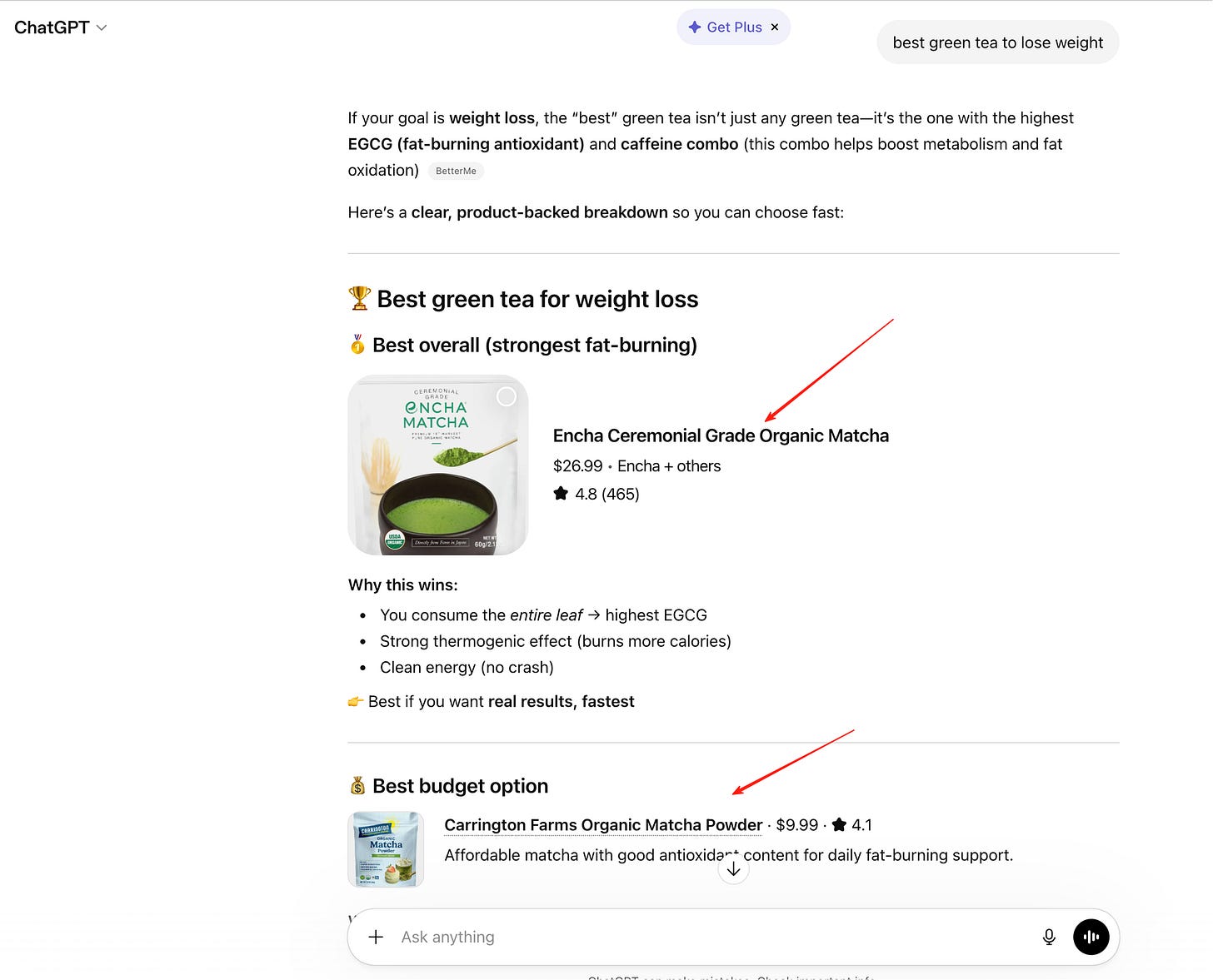 GEO 里 AI 通常会在同一个答案里同时引用多个竞争对手——Profound (做 AI 搜索可见度监测的公司)研究发现 ChatGPT 不选一个赢家,而是把直接竞争者并排引用。