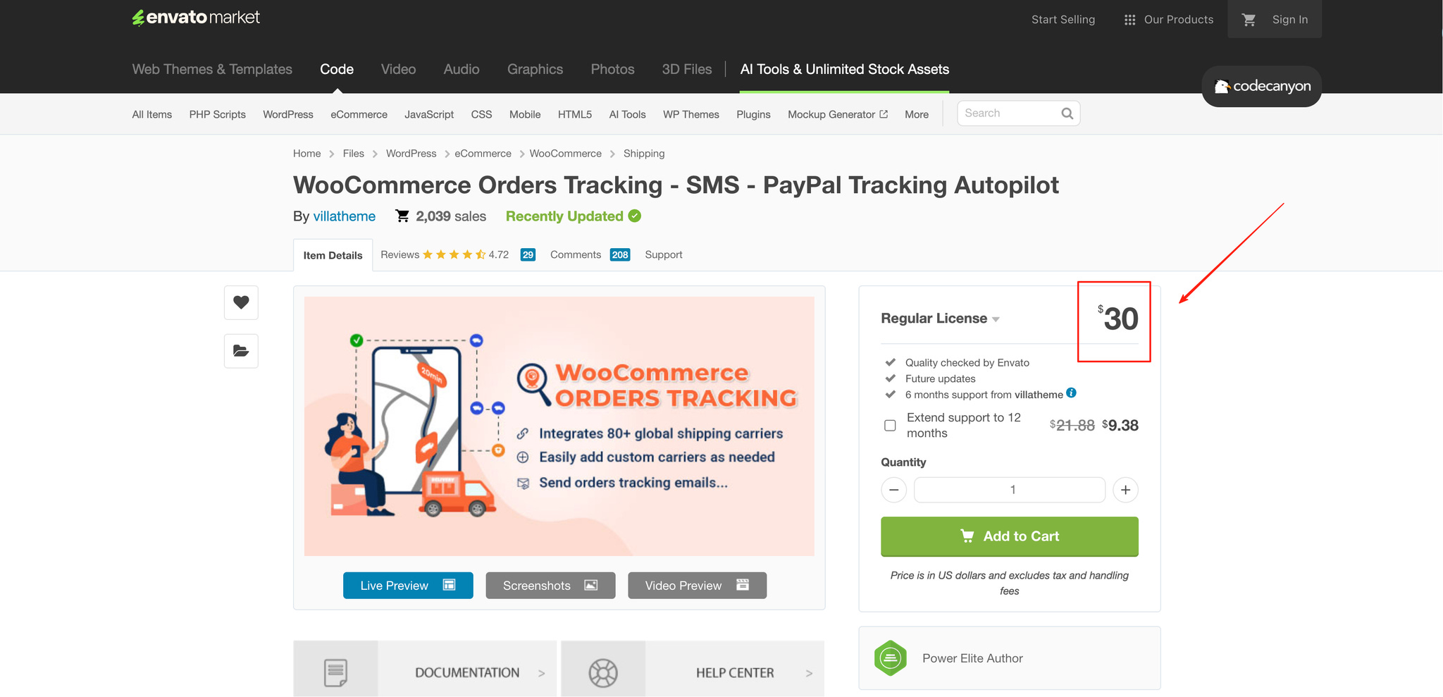 比如这个WooCommerce运单号同步插件,30$。